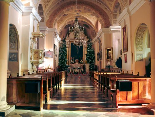 Wnętrze świątyni zachwyca spokojem i detalami – ołtarze, zabytkowe obrazy oraz atmosfera skupienia przypominają o wielowiekowej tradycji parafii. Kościół przez stulecia był świadkiem najważniejszych wydarzeń w dziejach miasta – od czasów potopu szwedzkiego po dramatyczne chwile II wojny światowej.